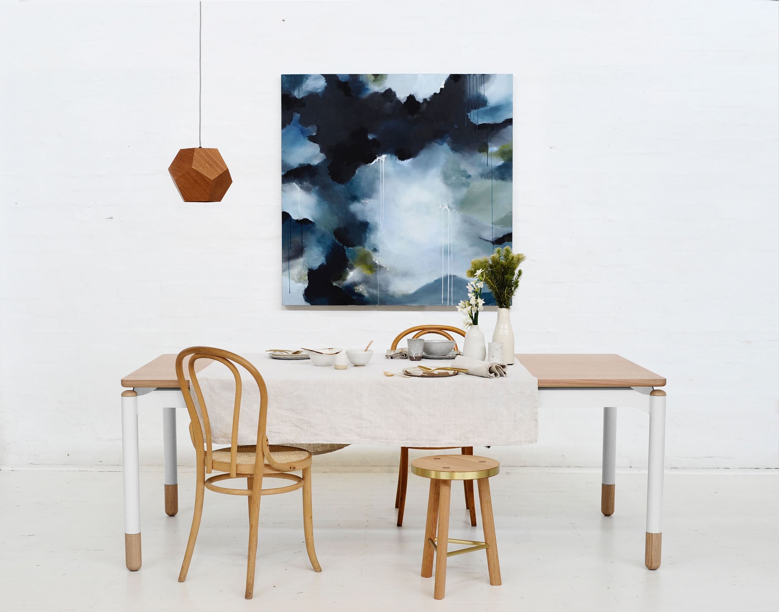 There’s actually quite a lot of space here, so I think it’s difficult to get everything done. I’m still at it — there’s a lot of work to be done in the bedrooms. But the biggest challenge is to really curate each area the way you want it because it’s a big space. The stools — they took a lot of time. I created them for a furniture fair in Milan and the original idea was to create a super light leather piece using carbon fiber and cowhide. I would like to get some original pieces by Donald Judd, either wood furniture, like the super simple geometric pieces, or some original Eames prototypes.